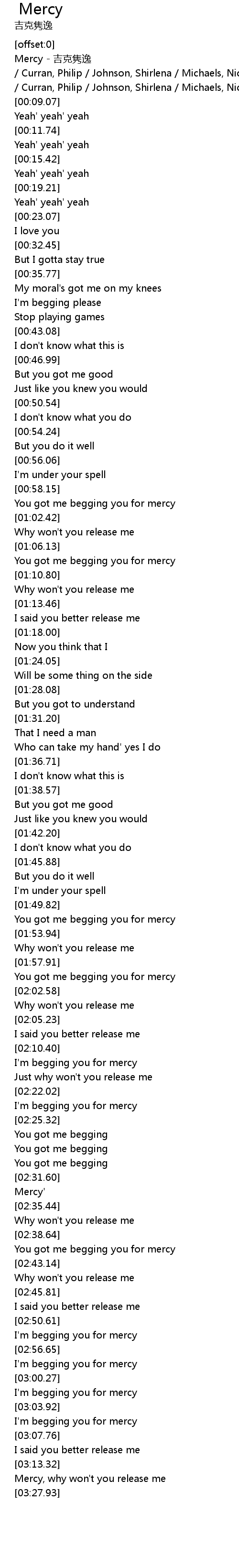 | [02:34.18] | Mercy' |