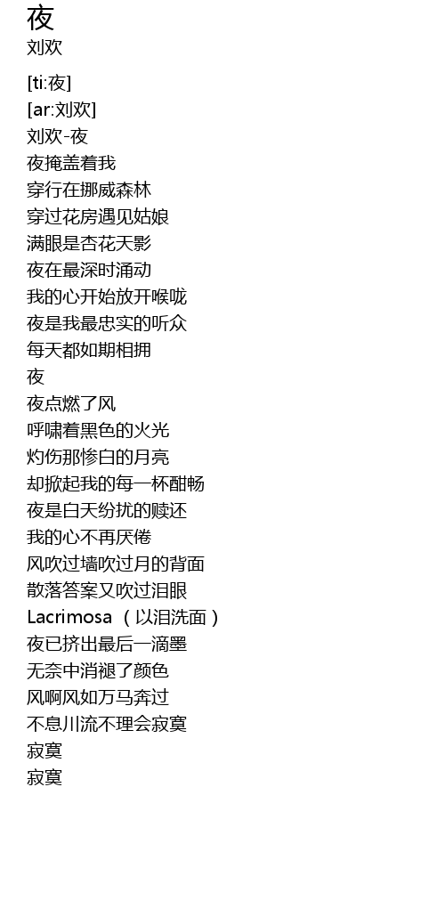 | [00:01.353] | 刘欢-夜 |