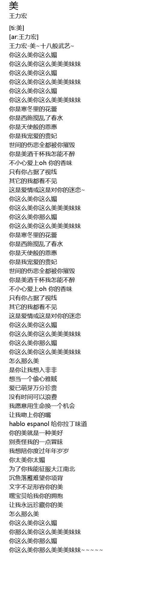 | [02:59.839] | nǐ zhè me měi nǐ nà me měi měi měi mèi mei |