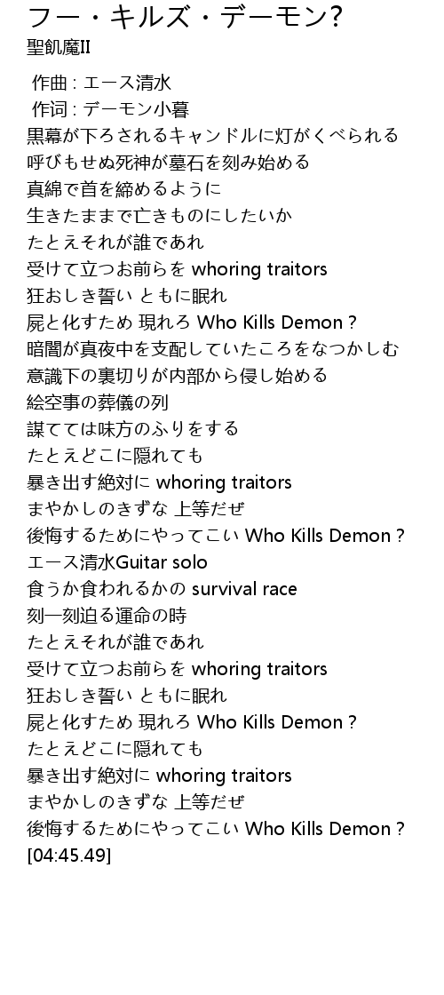 | [03:59.13] | 屍と化すため 現れろ Who Kills Demon? |