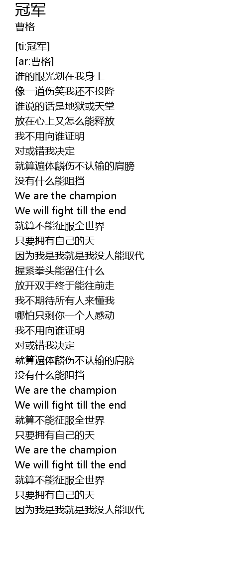 | [01:46.168] | 因为我是我就是我没人能取代 |