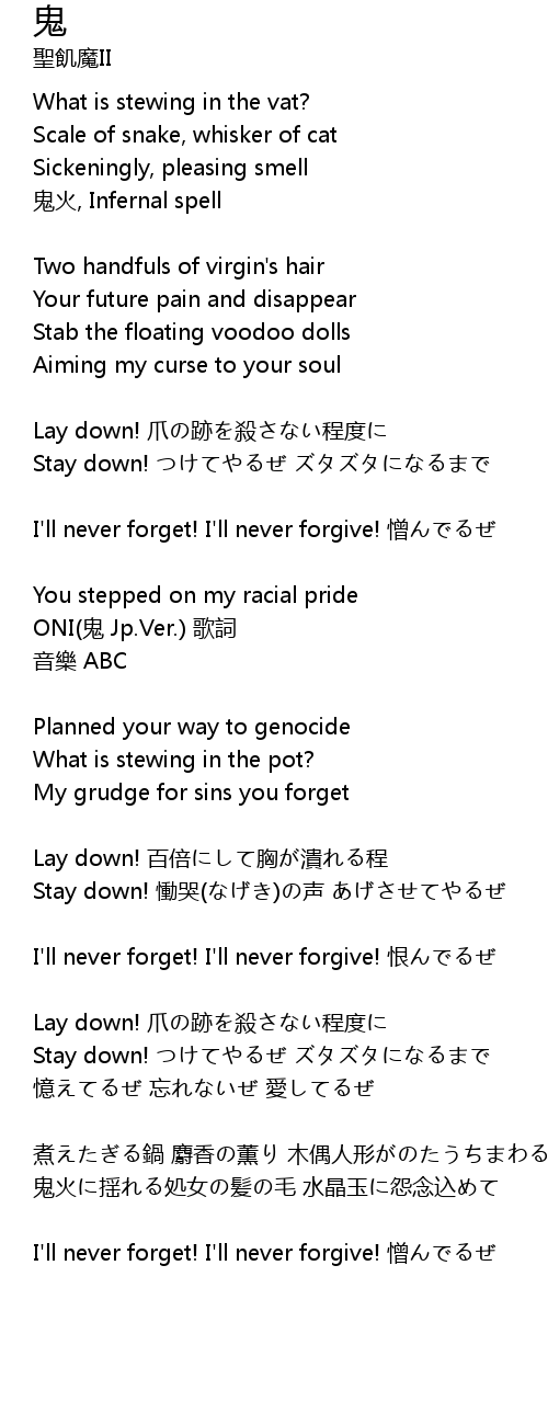| ONI(鬼 Jp.Ver.) 歌詞 | |