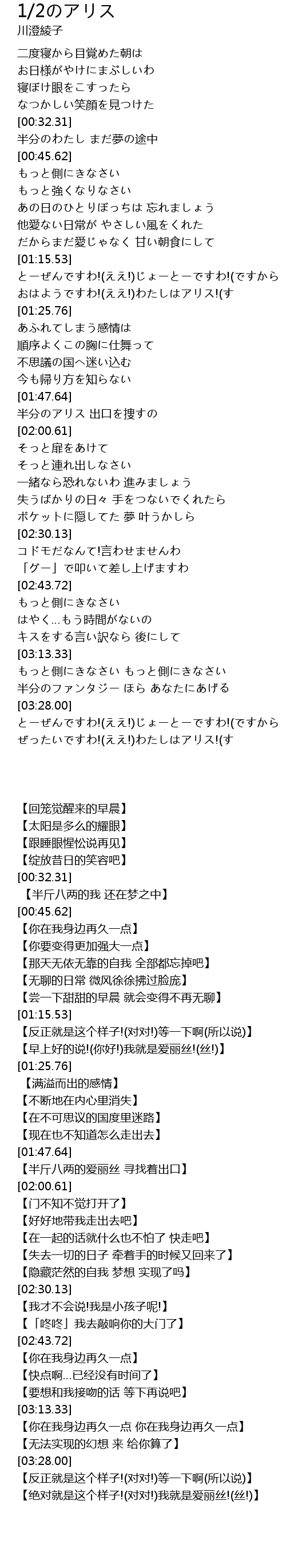 | [03:33.62] | ぜったいですわ!(ええ!)わたしはアリス!(す |
