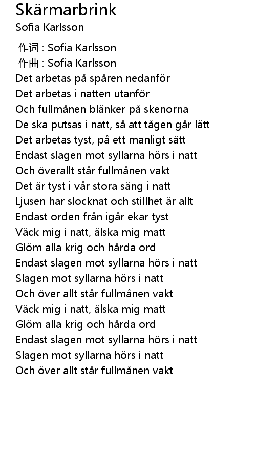 | [00:00.000] | zuò cí : Sofia Karlsson |