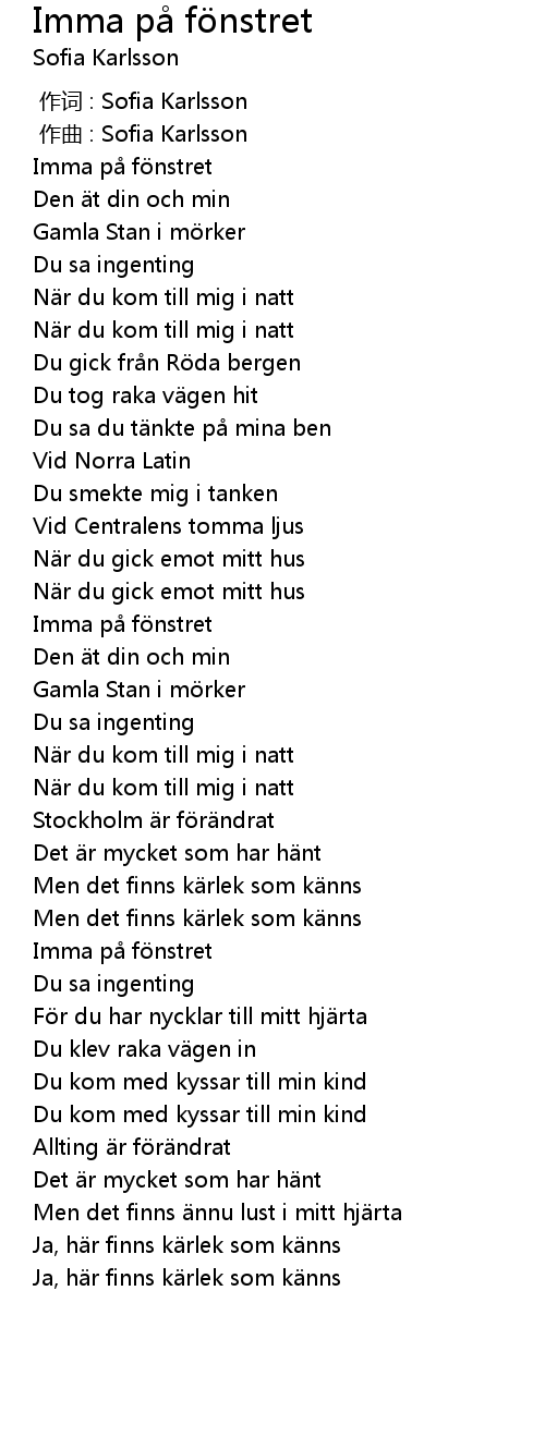 | [00:16.113] | Imma på fönstret |
