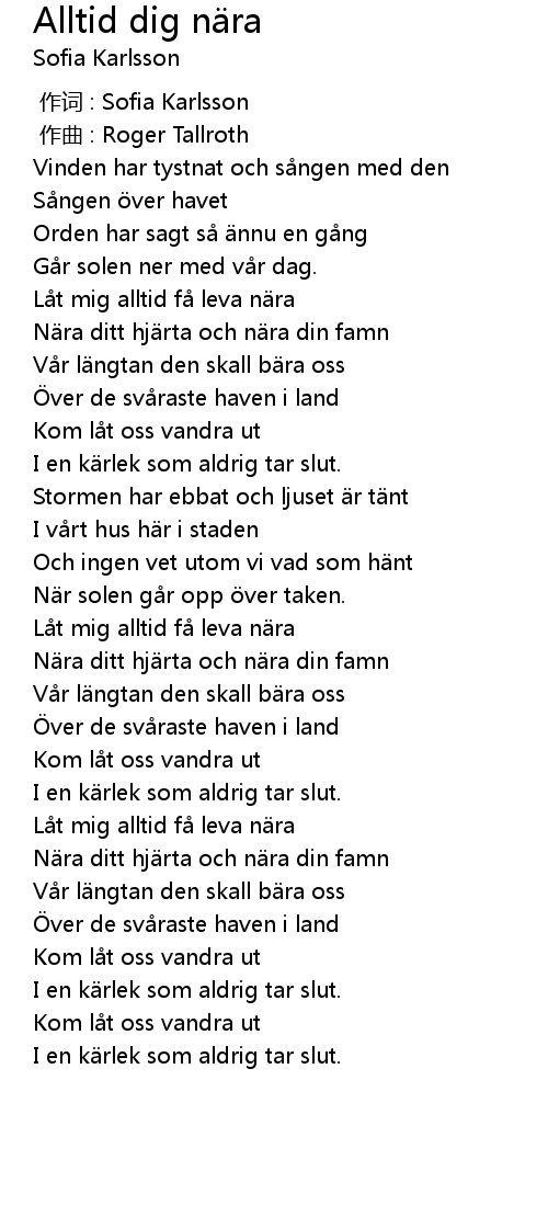 | [00:00.000] | zuò cí : Sofia Karlsson |