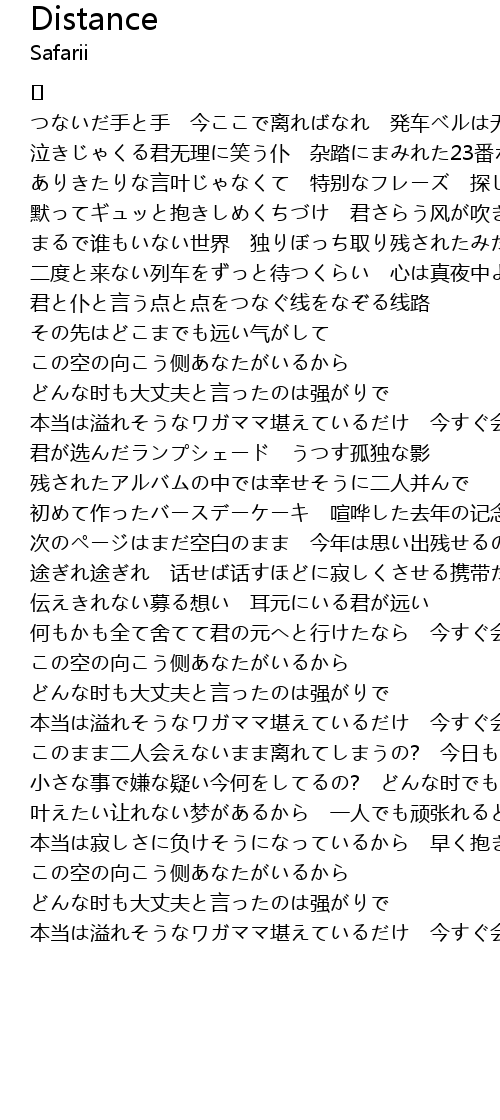 | 何もかも全て舍てて君の元へと行けたなら 今すぐ会いたいよ | |