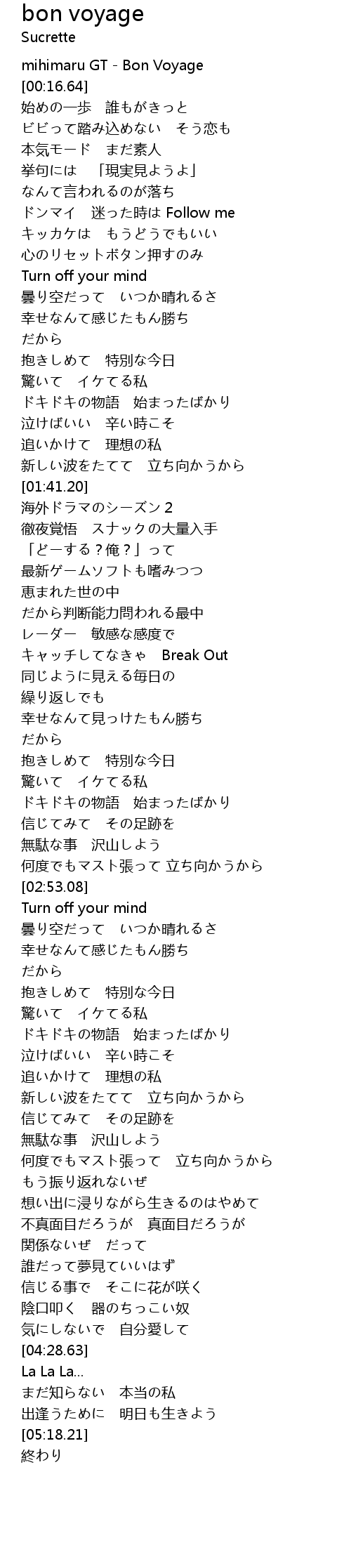 | [00:01.64] | mihimaru GT - Bon Voyage |