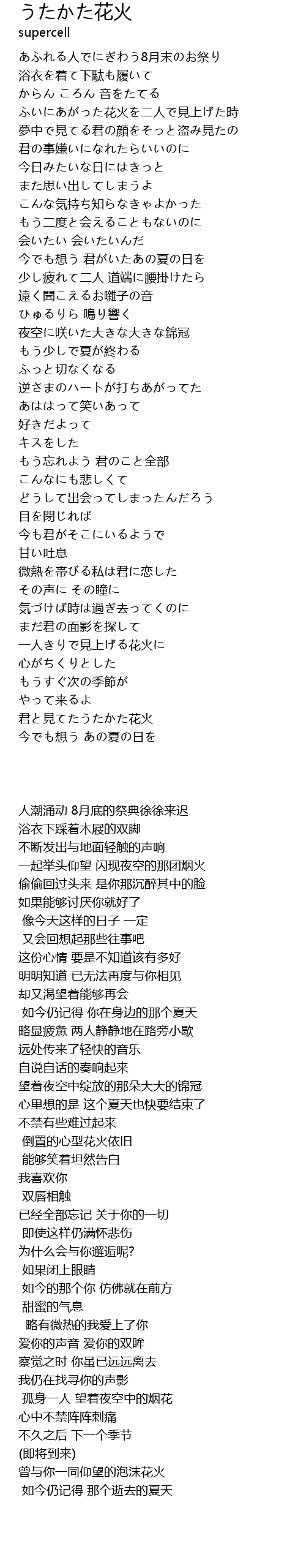 | [00:39.110] | ふいにあがった花火を二人で見上げた時 |