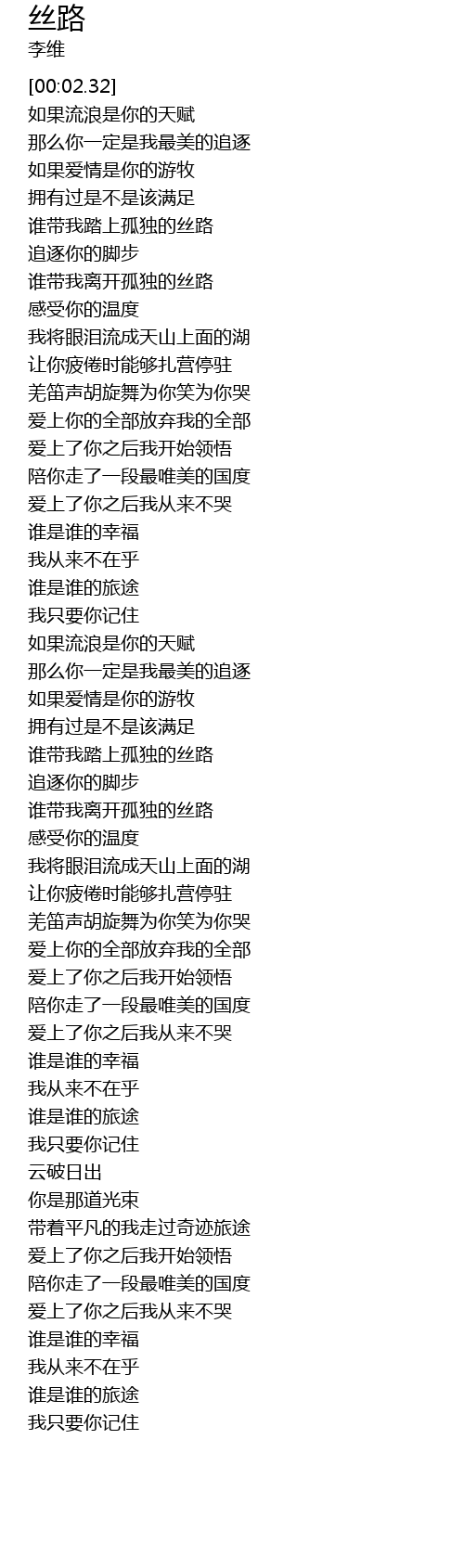 | [02:56.18] | 谁带我离开孤独的丝路 |