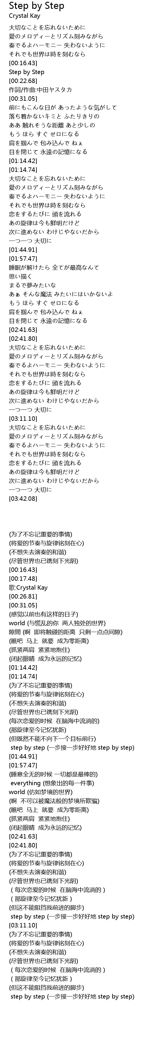 | [00:09.54] | 奏でるよハーモニー 失わないように |