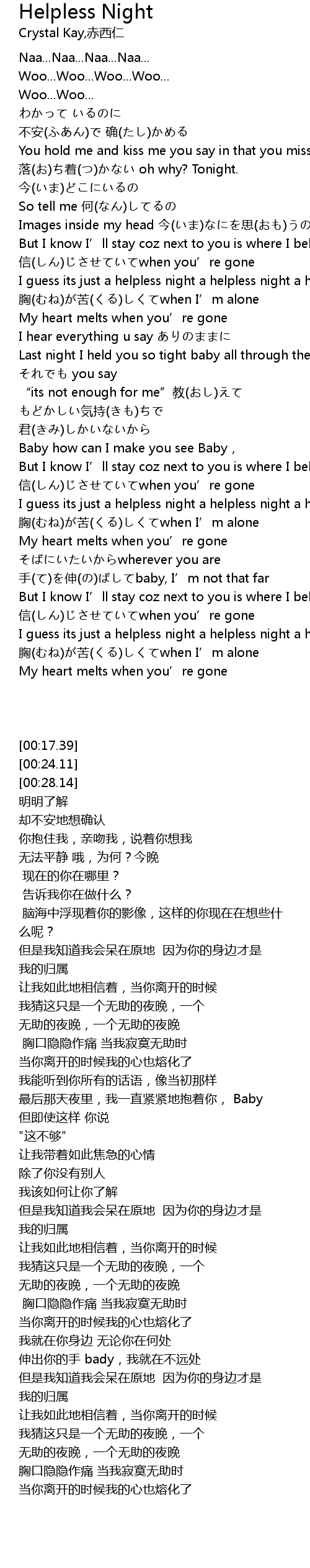 | [03:13.41] | I guess its just a helpless night a helpless night a helpless night |