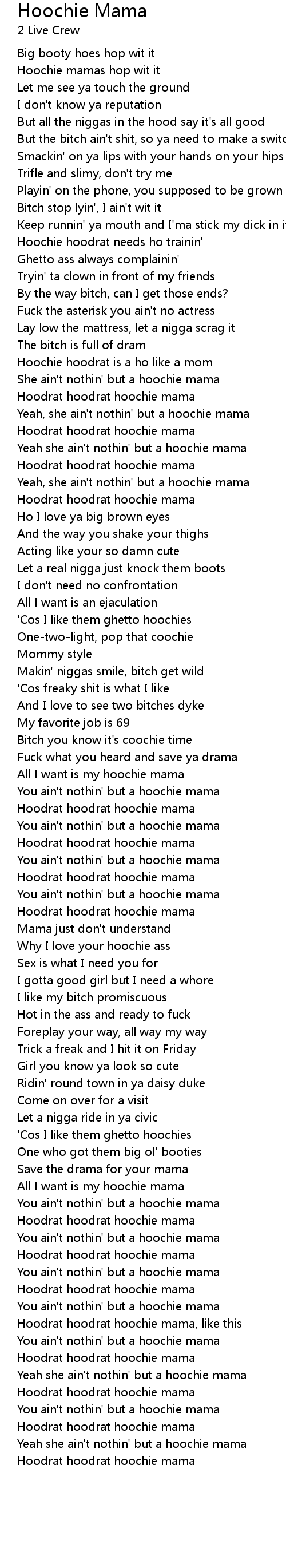 Hoodrat hoodrat hoochie mama |