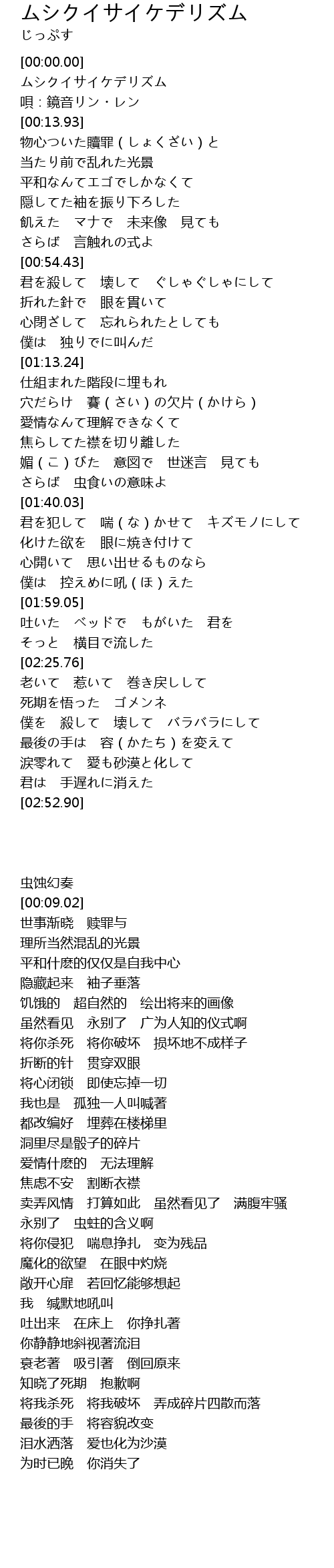 | [00:54.44] | 君を殺して 壊して ぐしゃぐしゃにして |