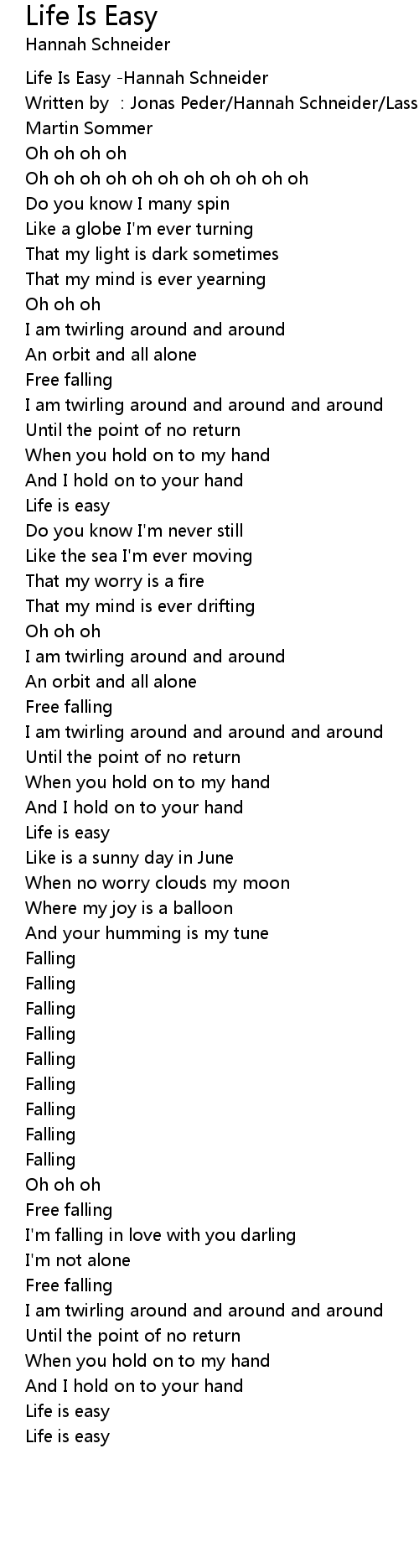 | [00:00.122] | Life Is Easy -Hannah Schneider |