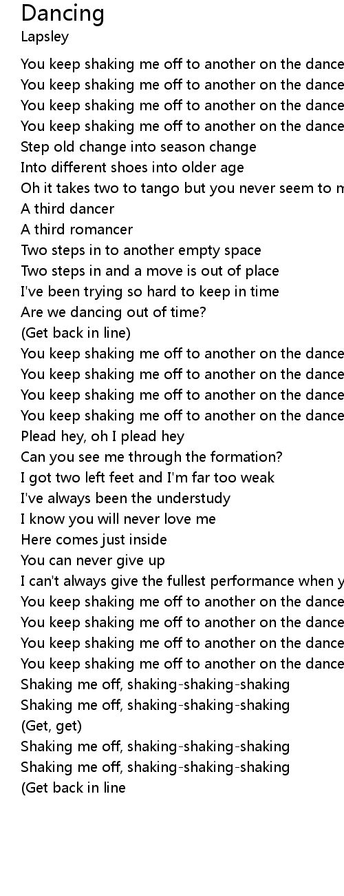 [00:08.26] You keep shaking me off to another on the dancefloor