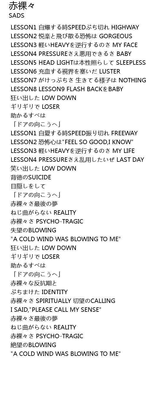 | [00:37.850] | LESSON1 自爆する時SPEEDぶち切れ HIGHWAY |