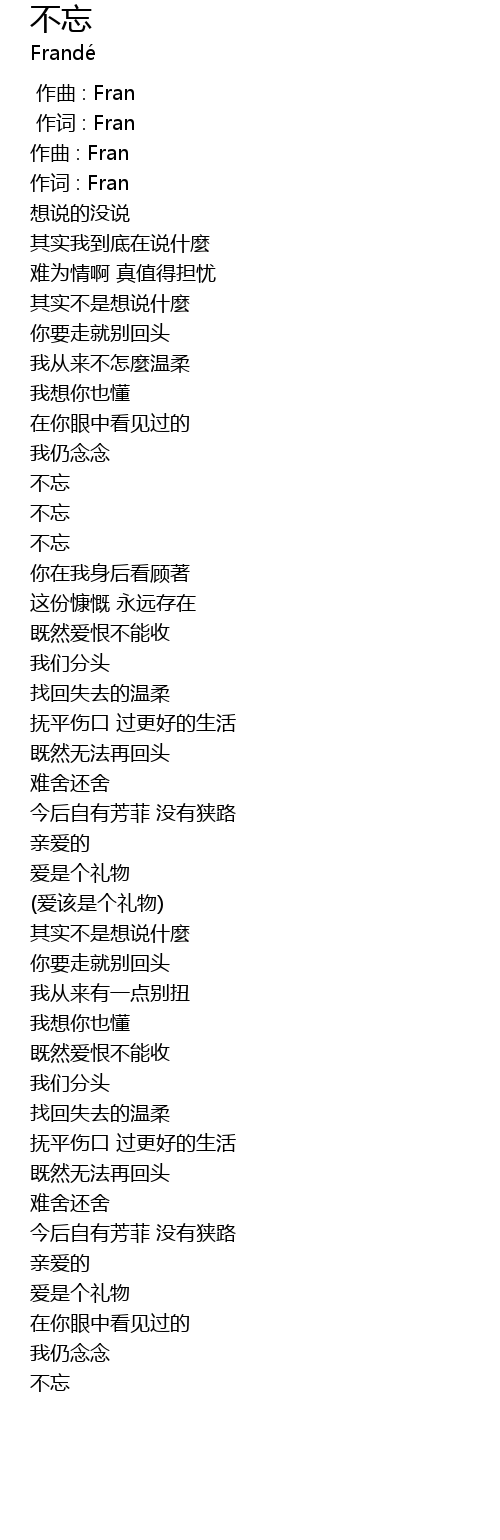 | [00:00.00] | zuò qǔ : Fran |
