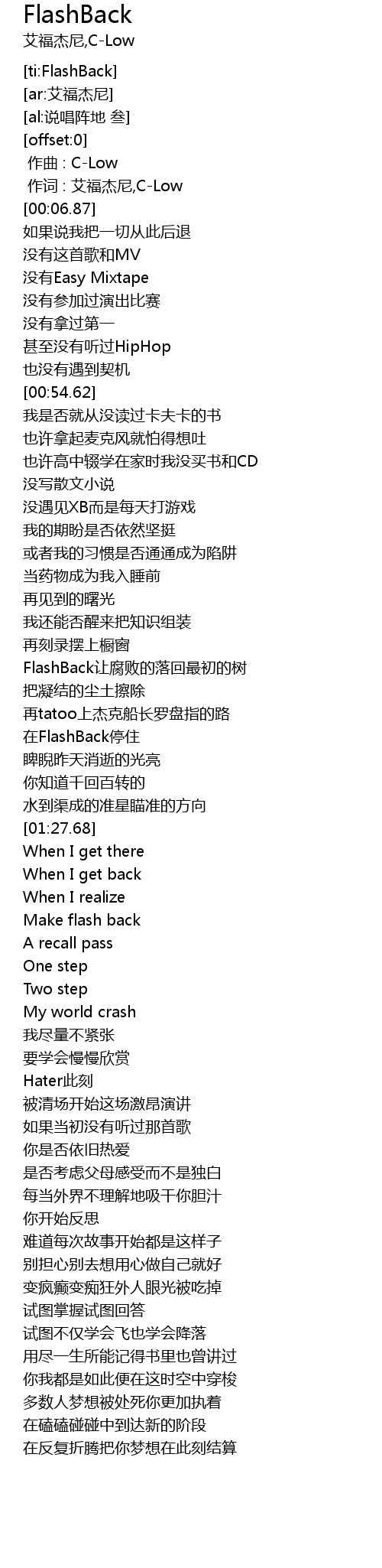 [00:01.00] 作词 : 艾福杰尼,C-Low