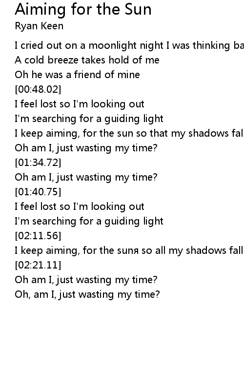 | [02:12.66] | I keep aiming, for the sun so all my shadows fall behind |