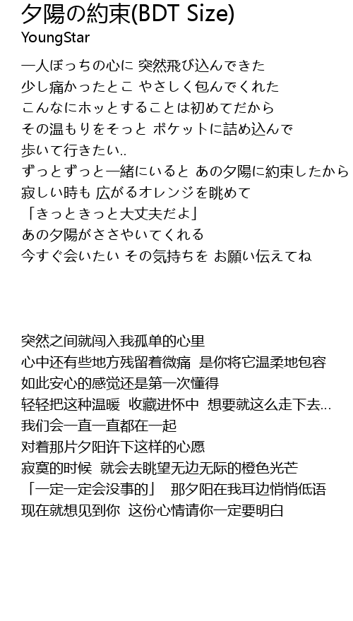 | [00:43.31] | ずっとずっと一緒にいると あの夕陽に約束したから |