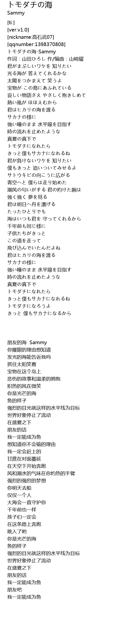 | [00:00.27] | トモダチの海-Sammy |