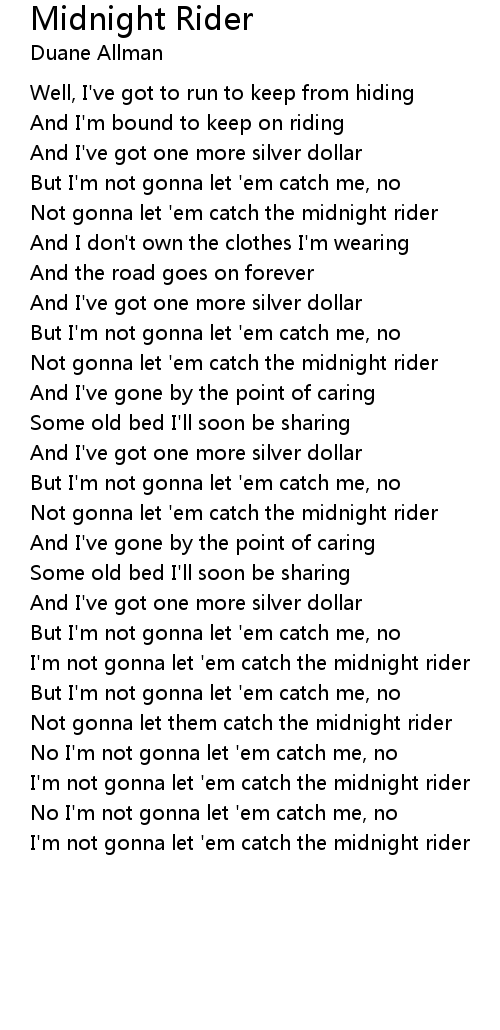 I'm not gonna let 'em catch the midnight rider |