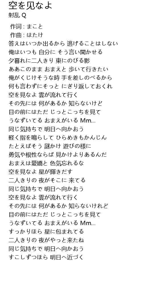 | [02:17.17] | 空を見なよ 星が輝きだす |