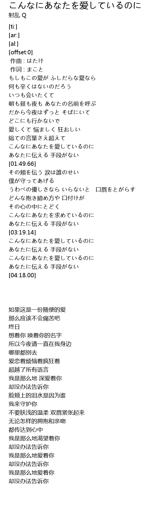 | [01:29.70] | こんなにあなたを愛しているのに |