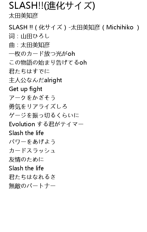 | [00:00.00] | SLASH !! hua tai tian mei zhi yan Michihiko |
