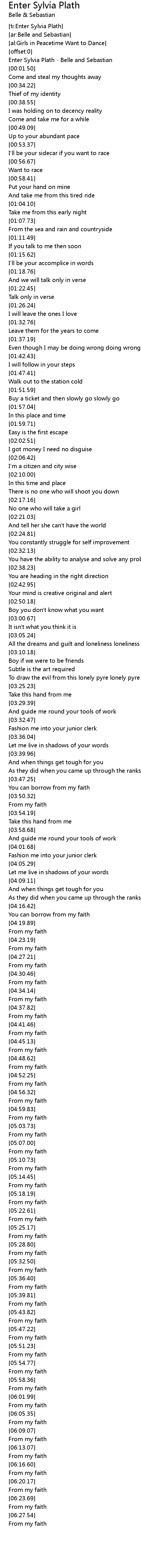 [00:00.12] Enter Sylvia Plath - Belle and Sebastian