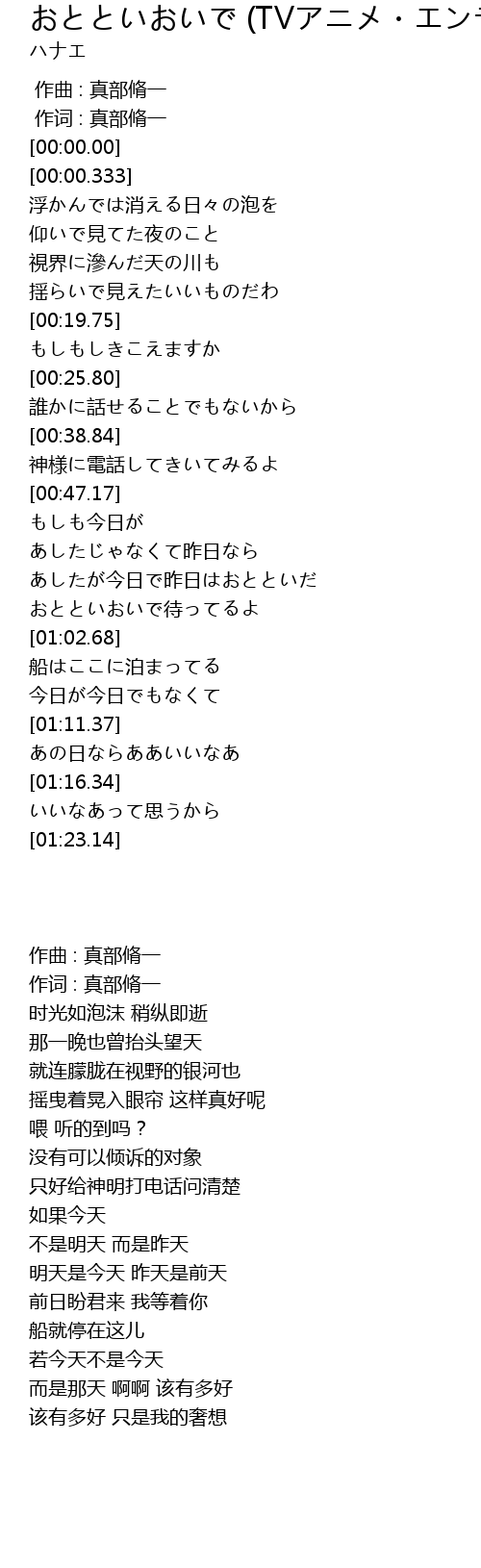 | [00:40.77] | 神様に電話してきいてみるよ |