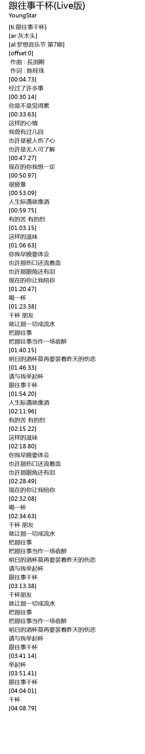 | [03:23.38] | 把那往事当作一场宿醉 |