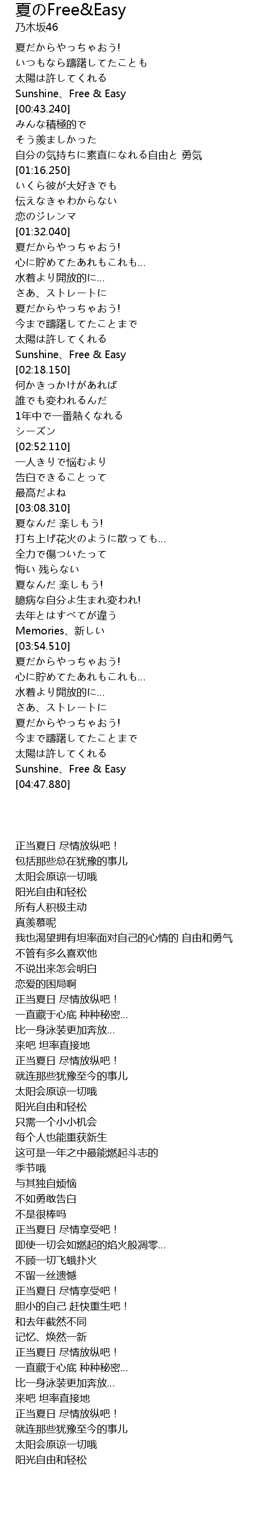 | [04:43.510] | Sunshine、Free & Easy |