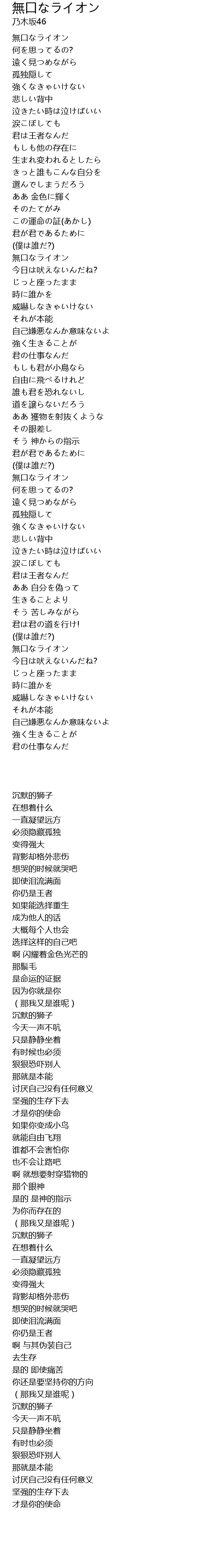 無口なライオン |