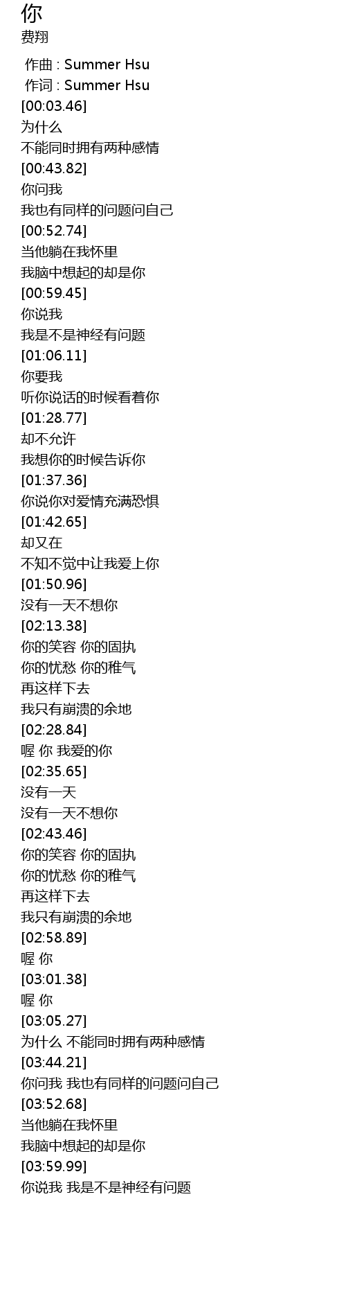 | [00:00.00] | zuò qǔ : Summer Hsu |