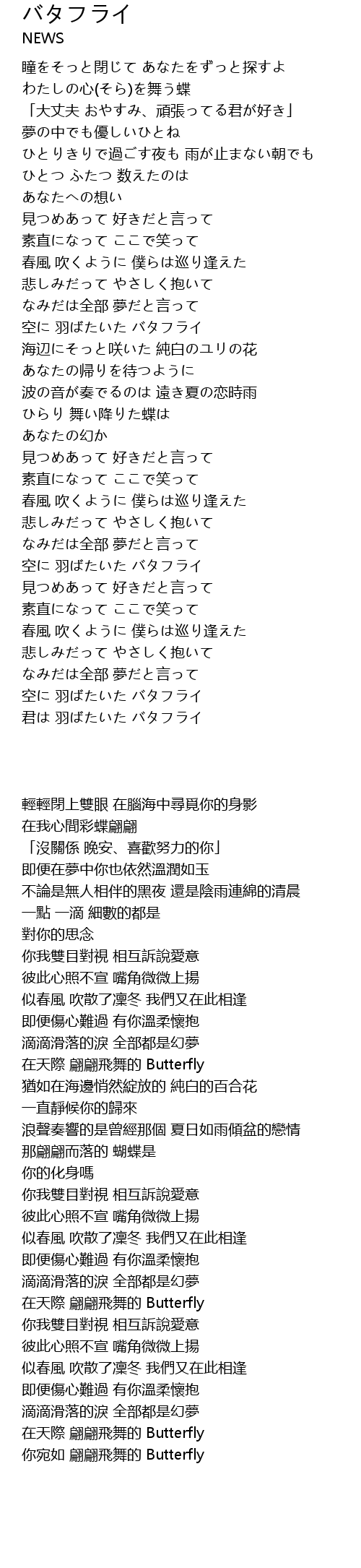 | [04:25.69] | 君は 羽ばたいた バタフライ |