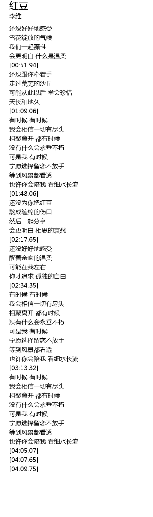 | [02:00.96] | 还没为你把红豆 |