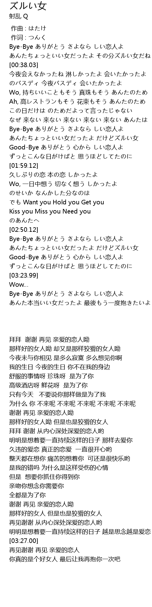 | [03:40.28] | Bye-Bye ありがとう さよなら しい恋人よ |