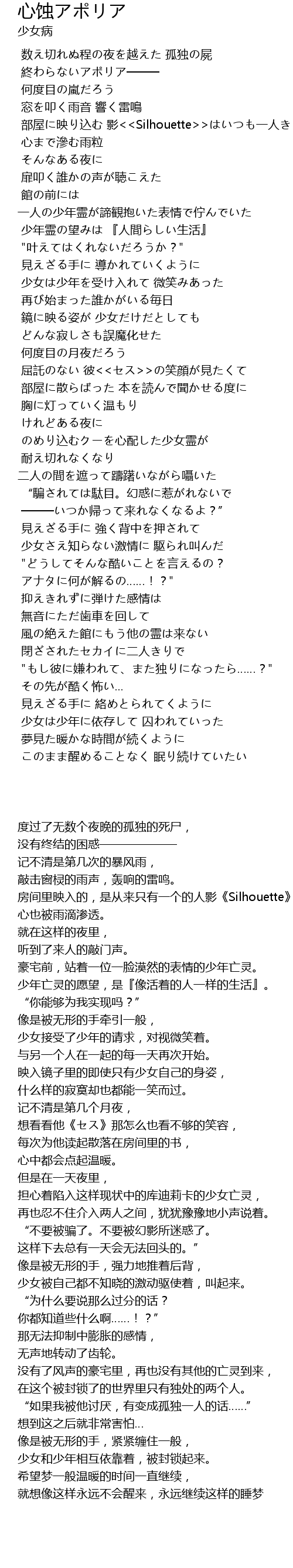| [00:47.480] | 部屋に映り込む 影<<Silhouette>>はいつも一人きり |