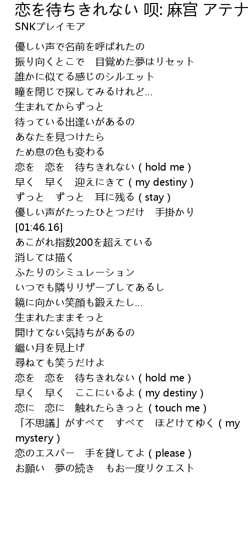| [01:13.52] | 恋を 恋を 待ちきれない(hold me) |