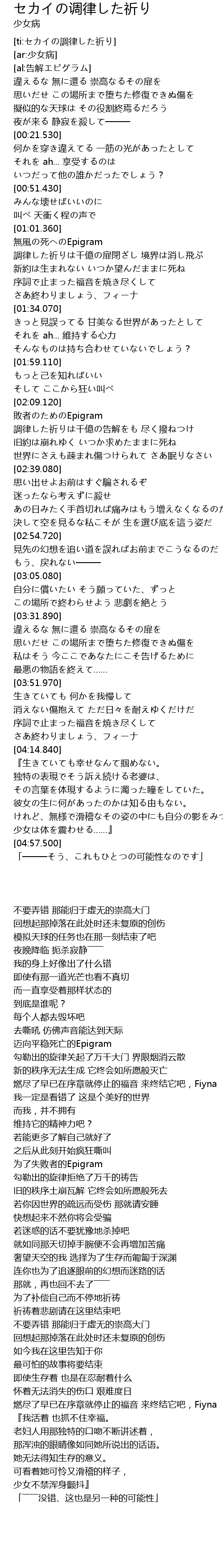 | [04:02.700] | 序詞で止まった福音を焼き尽くして さあ終わりましょう、フィーナ |