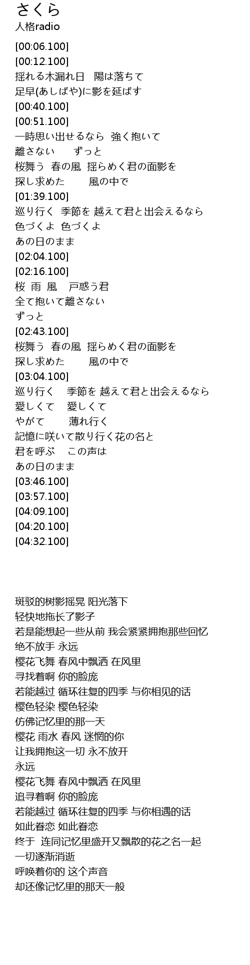 | [02:44.100] | 桜舞う 春の風 揺らめく君の面影を |