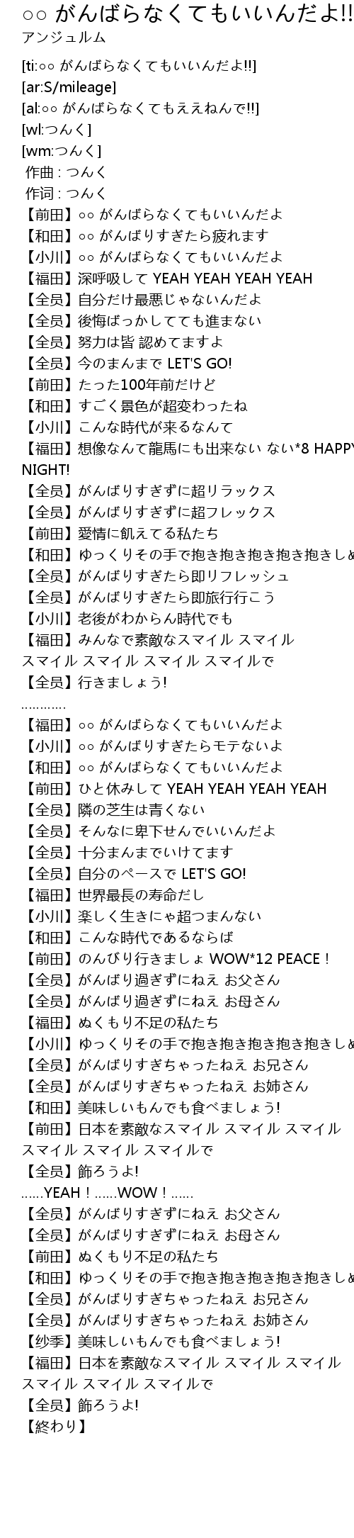 | [ti:○○ がんばらなくてもいいんだよ!!] | |
