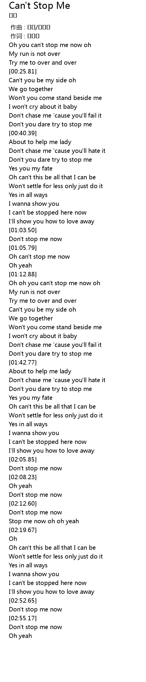 | [01:19.08] | Oh oh you can' t stop me now oh |