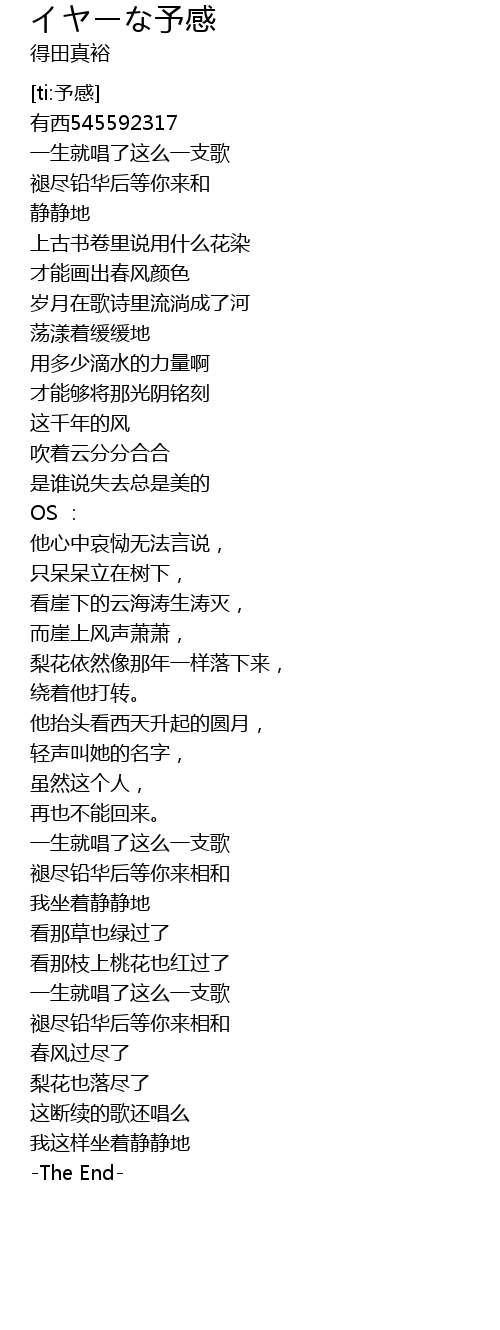 | [01:43.436] | yi sheng jiu chang le zhe me yi zhi ge |