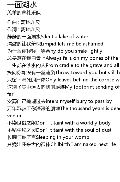 | jing jing de yi mian hu shui Silent a lake of water | |