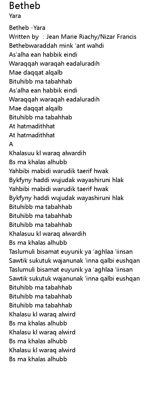 | [00:00.509] | Written by :Jean Marie Riachy/Nizar Francis |