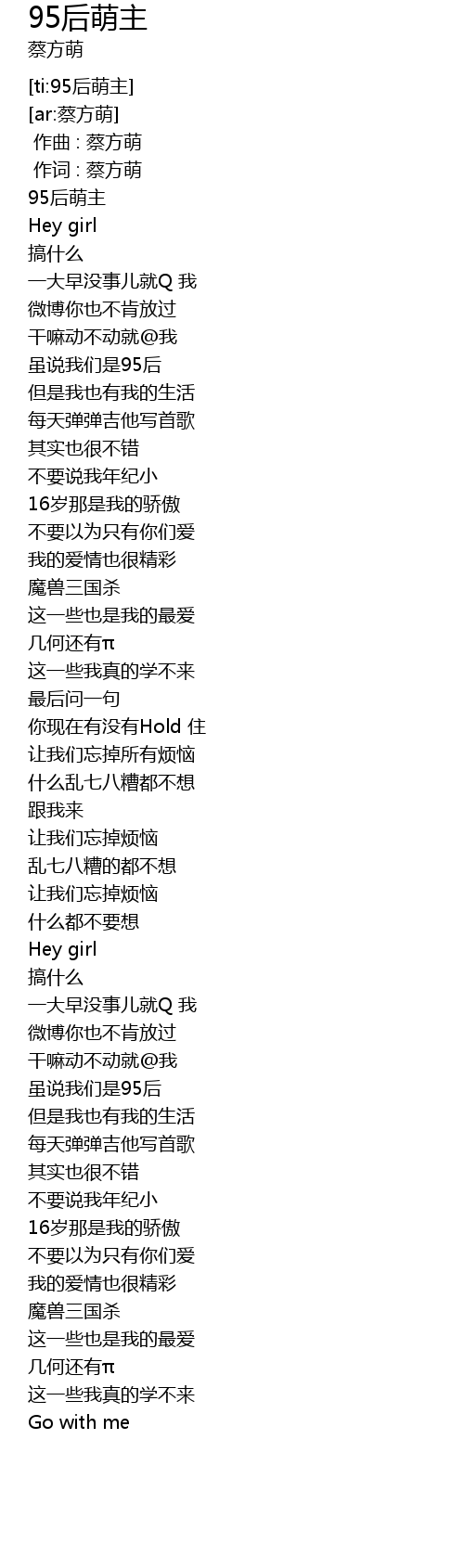 | [00:00.00] | 作曲 : 蔡方萌 |