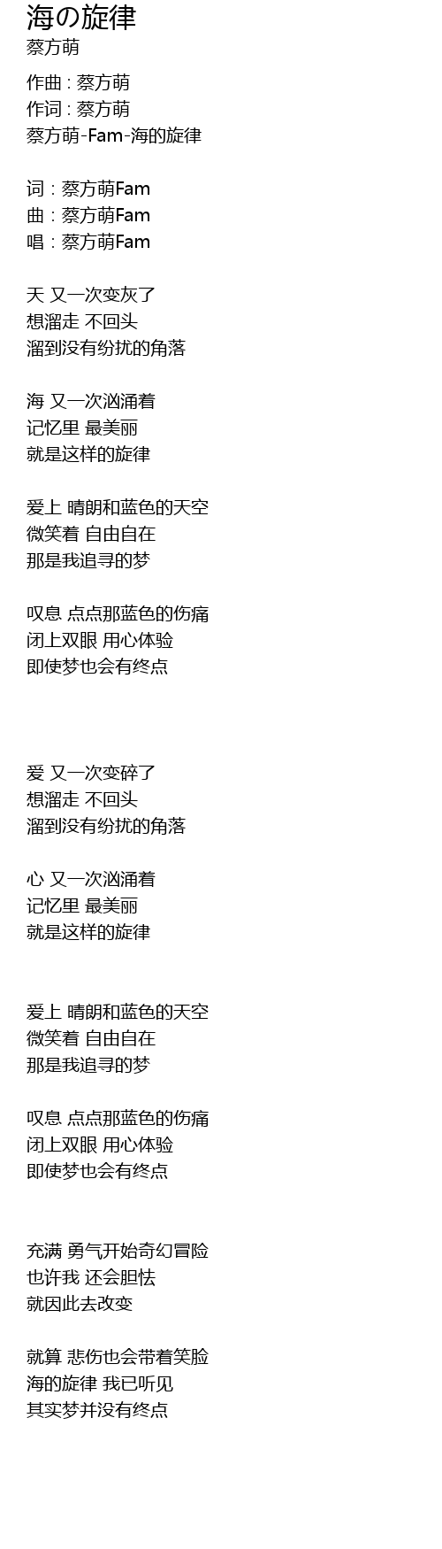 | 词:蔡方萌Fam | |